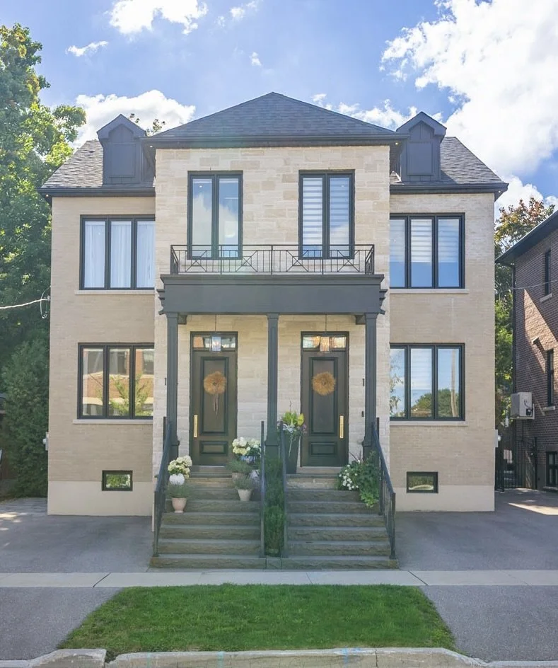 A rare opportunity to own a stunning, fully custom duplex offering two completely self-contained, modern residences ideal as a multi-generational home or an exceptional investment property. Each side boasts thoughtfully designed living spaces with 10-foot ceilings on the main and second floors, and 9-foot ceilings in the finished basements, creating a bright and airy atmosphere throughout. Enjoy hardwood flooring, oversized windows, and custom built-in closets that elevate everyday living.The heart of each home is the chef-inspired kitchen, complete with feature islands, built-in stainless steel appliances, and sleek finishes that blend style with functionality. Upstairs, you'll find 2 spacious bedrooms and 2 full bathrooms on each side, while the finished basements offer large, versatile open rooms perfect as a 3rd bedroom, guest suite, or additional living space plus beautifully designed bathrooms and custom laundry rooms. Step outside to your private oasis with a professionally landscaped yard, ideal for relaxing or entertaining. Located just steps from historic Main Street, enjoy unparalleled access to local cafés, restaurants, walking trails, boutique hotels, and vibrant seasonal events. Whether you're looking for a forever home, multigenerational living, or a turnkey investment, this duplex delivers unmatched flexibility, quality, and location. Seller's can provide fence between sides prior to closing if requested.*